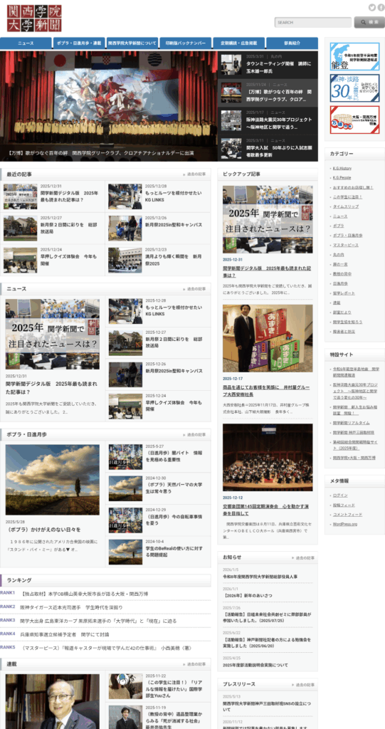 関西学院大学新聞(756号以降)(関西学院大学新聞ホームページ)