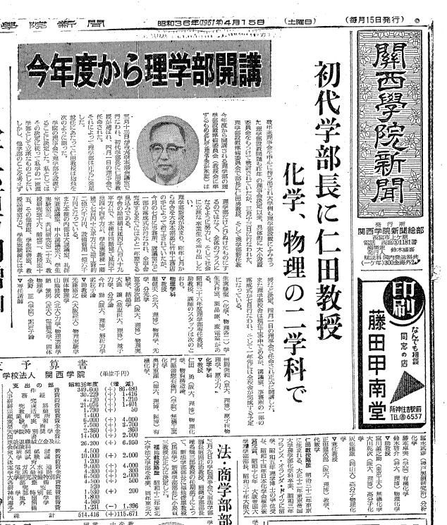 関西学院大学で初の理系学部「理学部」が開設