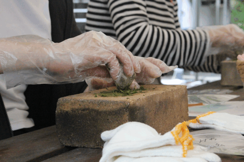 参加者は、キャンプ場内にある森でスギやヒノキなどを、ハーブ園ではゼラニウムやカモミールなどを摘み、それらをつぶして香りを抽出する作業を行い、自分だけの香りを製作した。参加した清水咲希さん(20代)は「自然の中で非日常を味わえた。(ハーブを)潰して匂いを確認しながら調整するのが楽しかった」と笑顔だった。