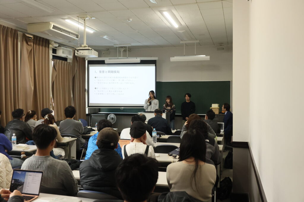 金菱ゼミ出版報告会=2025年12月2日、西宮上ケ原キャンパス商学部棟、久保田創士撮影