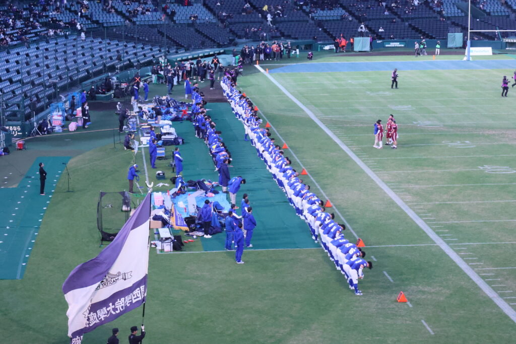 体育会アメリカンフットボール部ファイターズは12月14日、阪神甲子園球場(兵庫県西宮市)で行われた第80回毎日甲子園ボウルに出場した。アメリカンフットボールの大学日本一を決める試合の対戦相手は関西学生リーグで優勝を争った立命館大学パンサーズ。ファイターズは14対38で立命館大に敗れ、2年ぶり35度目の優勝を逃した。