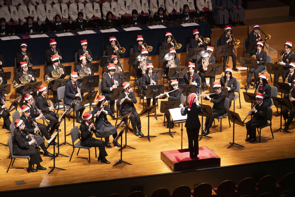 第二部では、学院の音楽団体の紹介と共に関西学院グリークラブの「Jingle Bell」や応援団総部吹奏楽部による「そりすべり」などが披露された。関学卒の由木康氏が訳詞した学院と縁が深い「きよしこのよる」では、来場者も加わり、会場全体が一体となって歌声を響かせた。その他関西学院聖歌隊やウィメンズ・グリークラブ、混声合唱団エゴラド、交響楽団、ハンドベルクワイアのほか、初等部から高等部、卒業生団体も出演し、世代を超えた共演となった。
