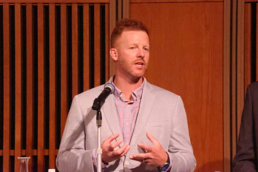 阪神タイガースで外野手として活躍したマット・マートン氏の講演会が、昨年12月8日、関西学院会館で開催された。会場に設けられた座席が埋まり、立見席が設けられるほどの人気ぶりだった。