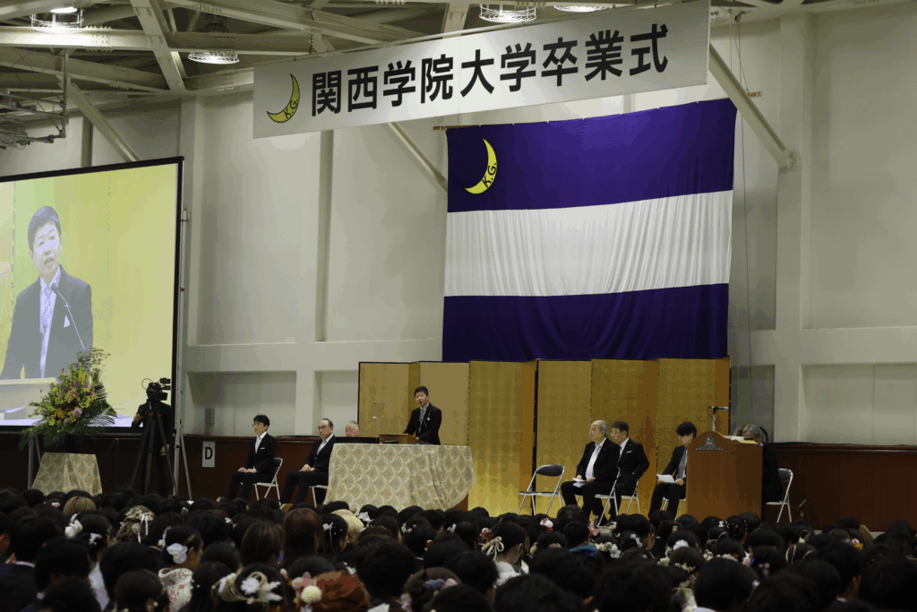 関西学院大学は3月17日と18日に秋学期大学卒業式を西宮上ケ原キャンパス総合体育館で開催した。17日には文学部など10学部、18日には社会学部など5学部の式を挙行し、5669人に卒業証書を授与した。